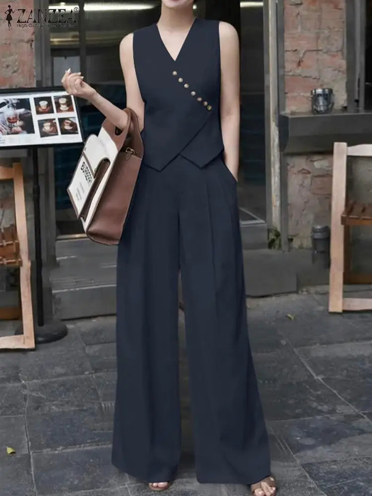 Women’s Spring Summer Linen 2-Piece Set – Crop Top & High Waist Pants