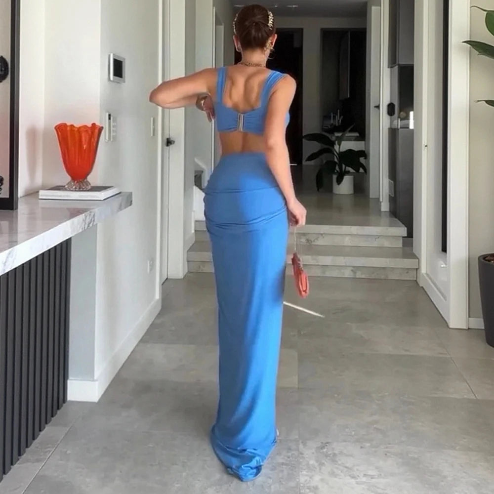 Turn heads this season with this Summer 2-Piece Set, featuring a slim-fit crop top and a floor-length A-line maxi skirt. Perfect for the beach, summer clubs, or elegant evening parties, this outfit combines effortless comfort with high street style sophistication.
