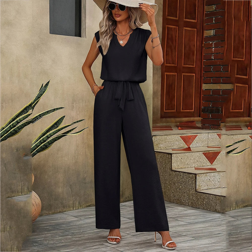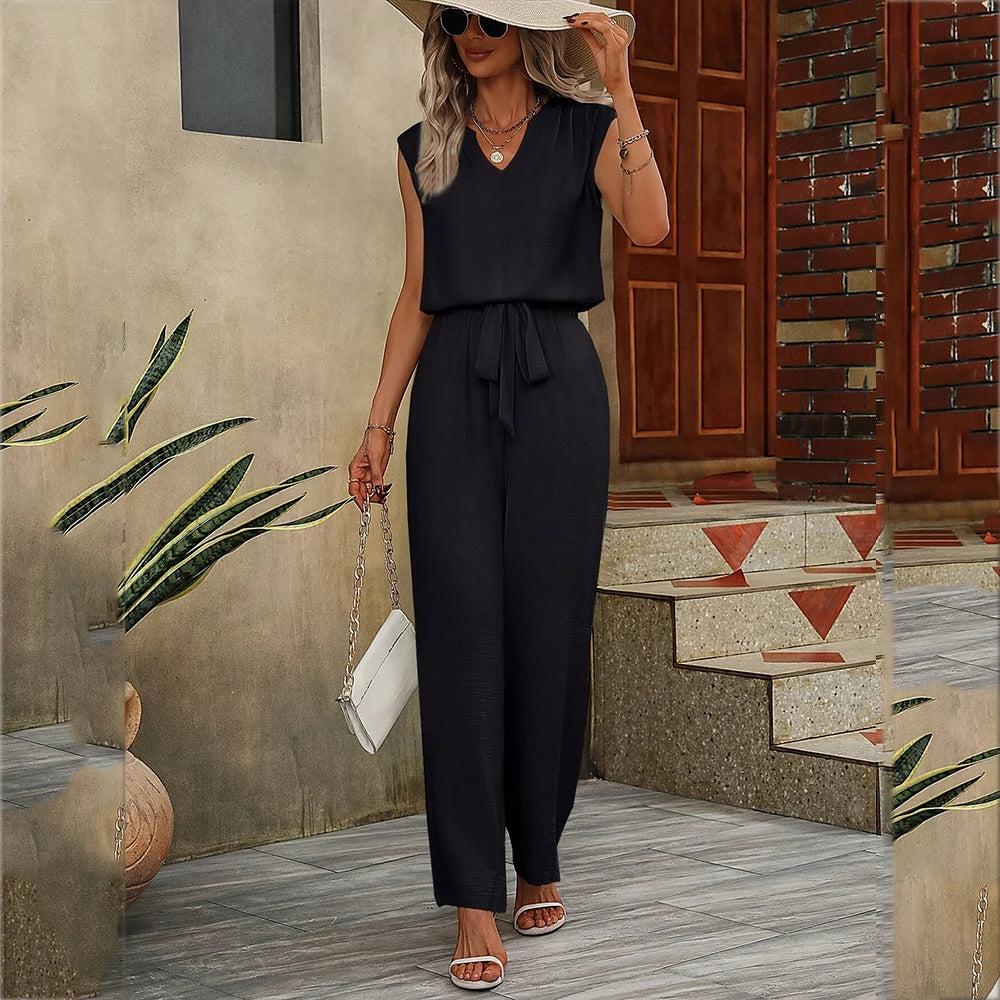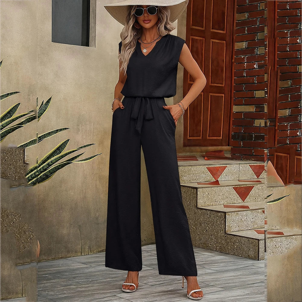 Elevate your summer wardrobe with our Form Noir Set. This Sleeveless V-neck top paired with high-waist wide-leg pants with pockets. Designed for comfort and style, this set is the perfect mix of casual and high street fashion—easy to dress up or down for any occasion.